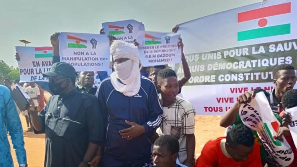 Comme une réponse aux rassemblements pro junte, ce sont des banderoles imprimées qui reprennent les appels à l’ordre constitutionnel “Tous unis pour la sauvegarde des acquis démocratiques, non à la manipulation des populations, vive la communauté internationale” Tels ont été les messages véhiculés par les manifestants. Mais très vite ces rassemblement ont été dispersé par la police. Les slogans et appels se sont aussi retrouvés sur des vidéos diffusées sur les réseaux sociaux comme à Doungou dans la région de Zinder. Les militants du PNDS, le parti du président BAZOUM réitèrent “Nous témoignons notre attachement aux idéaux et à la république, à la démocratie et à l’Etat de droit. Nous exigeons un retour à l’ordre constitutionnel normale” défendent les adeptes du président déchu.